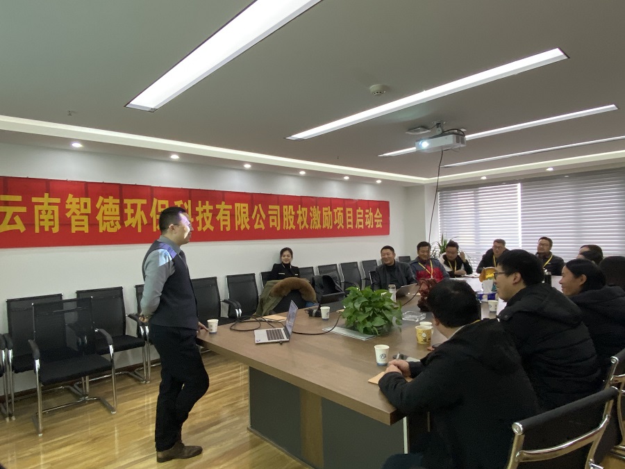2020年12月23日云南智德環(huán)保科技有限公司(簡(jiǎn)稱智德環(huán)保)股權(quán)激勵(lì)項(xiàng)目啟動(dòng)大會(huì)——這一極具里程碑意義的活動(dòng),在智德環(huán)保中高層管理人員和神州英才李總所帶領(lǐng)的智德環(huán)保股權(quán)激勵(lì)項(xiàng)目組的共同見證下隆重召開!股權(quán)激勵(lì)項(xiàng)目啟動(dòng)會(huì)儀式由總經(jīng)理許海生主持。